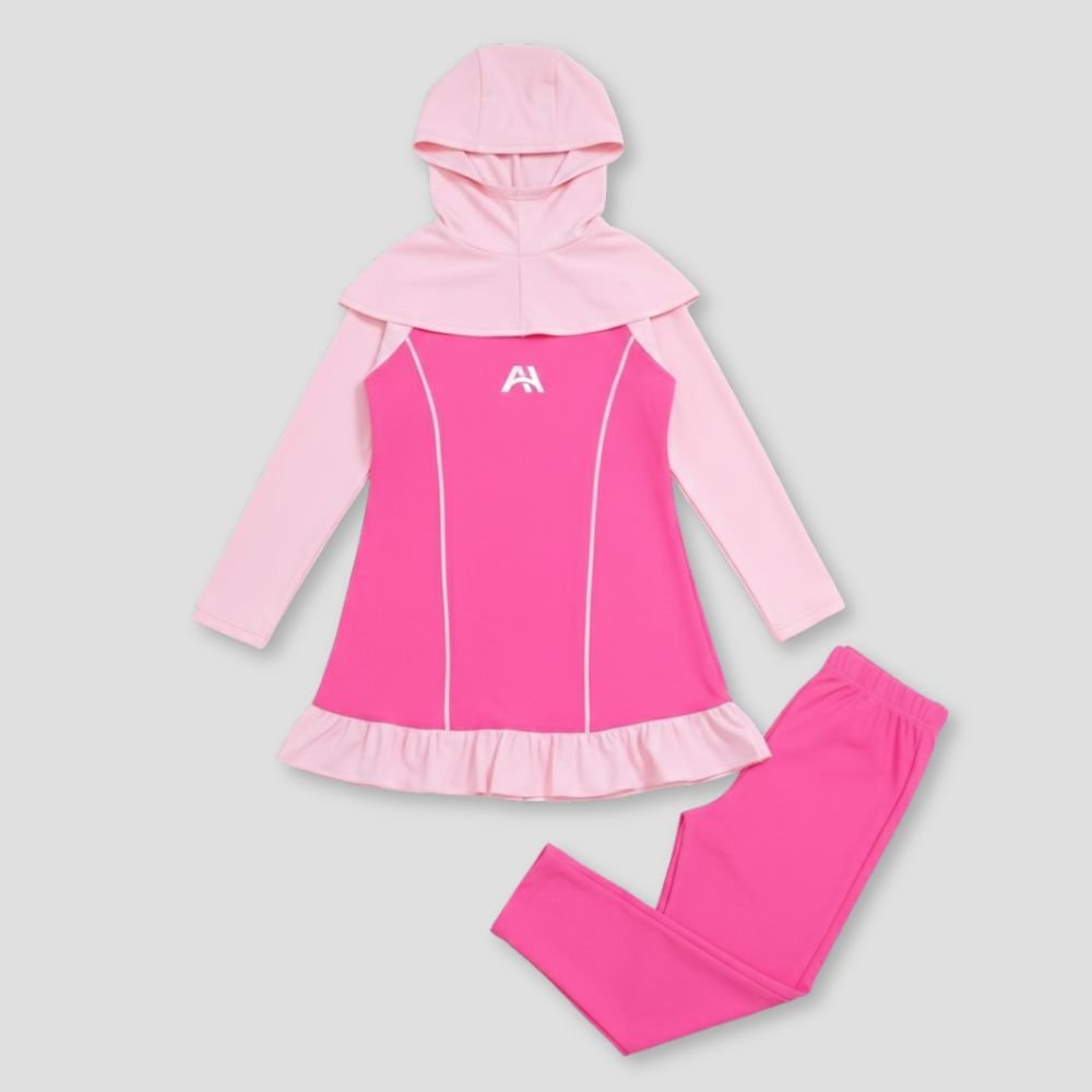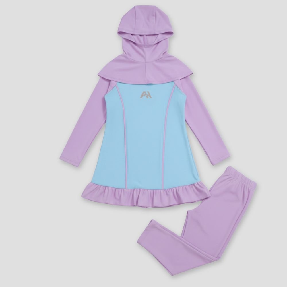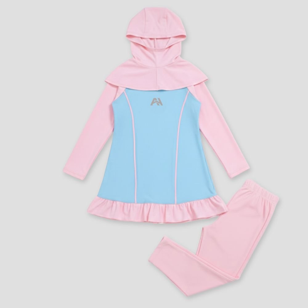 Satu set pakaian renang anak perempuan muslim berbahan dasar poly spandex paduan dari 60% nylon dan 40% spandek, bersifat elastis, ringan dan lebih cepat kering sangat tepat bagi anak bunda yang hobby berenang. Model setelan yang terdiri dari: hijab, baju renang dan celana renang, dengan design yang manis, sporty, feminim serta dirancang dengan comfort stretch yang memiliki daya renggang yang nyaman supaya anak bunda bebas beraktivitas di dalam air, dan dilengkapi dengan sun protection yang melindungi anak bunda dari paparan sinar matahari. Dengan jahitan yang berkualitas, kuat, rapih, rapat, serta kombinasi warna yang menarik menjadikan AS Girl 01 pilihan tepat bagi anak bunda yang hobby berenang.