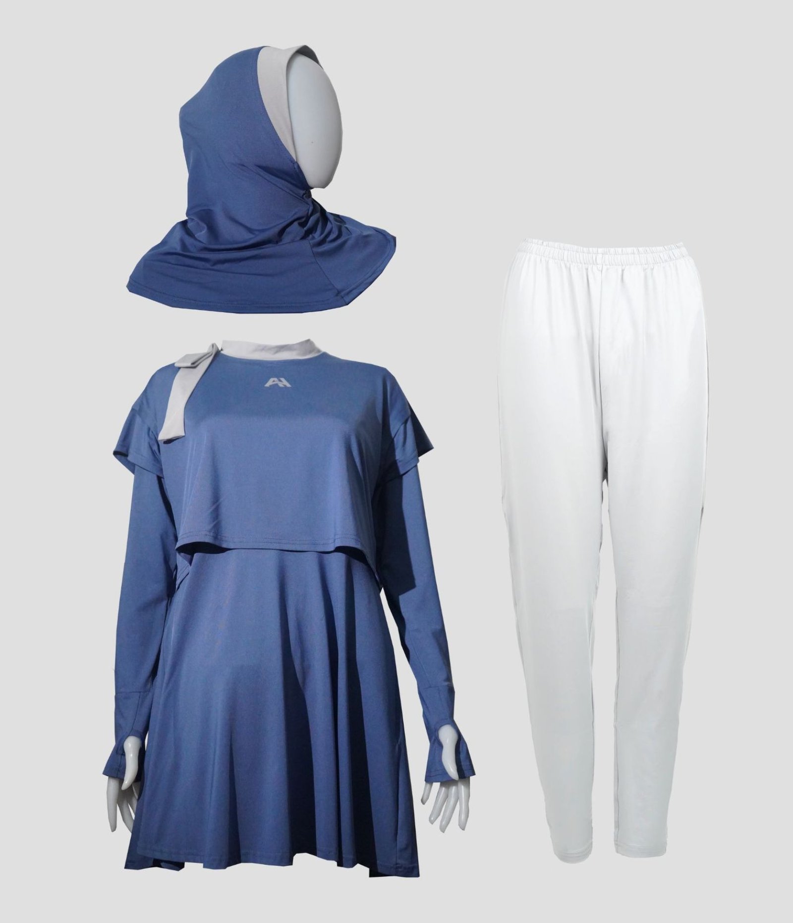 - Terdiri dari: hijab, baju renang dan celana renang
